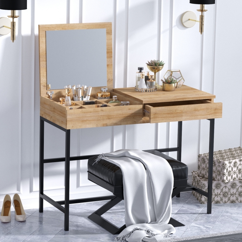 Tento univerzálny stolík môžete použiť ako toaletný stolík na každodenné líčenie alebo môžete zrkadlo skryť a použiť ho ako klasický písací stôl.