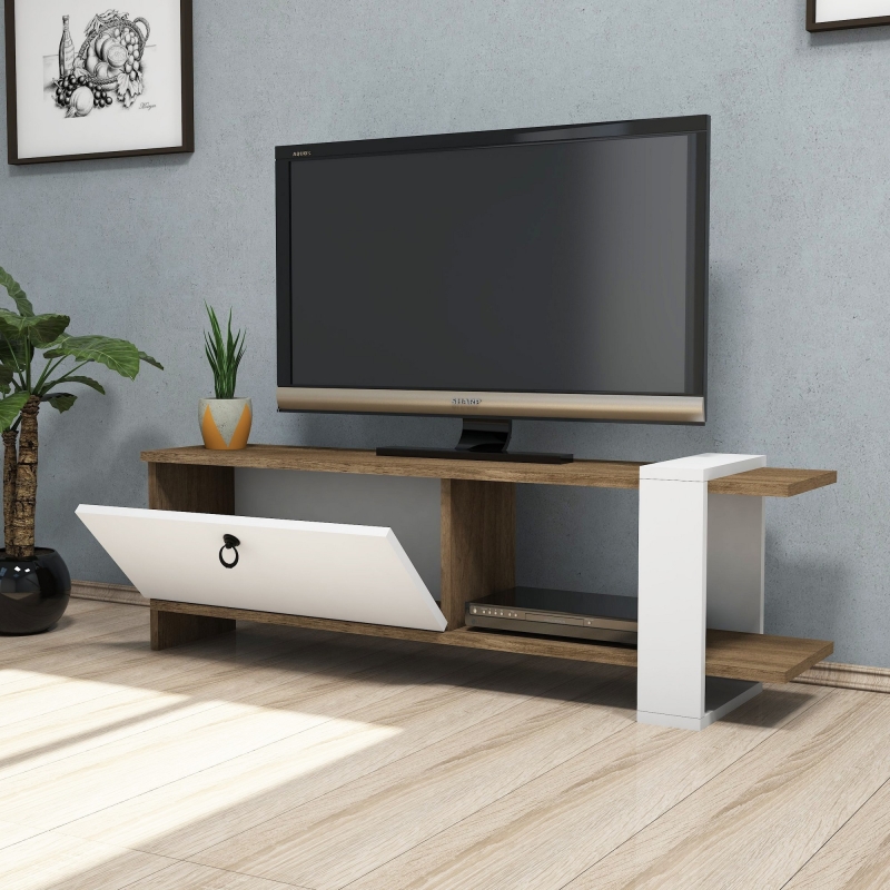 Televízny stolík v dekore orech sa dokonale hodí do každej obývačky. Stôl má jednu skrinku s výklopnými dvierkami. Povrchová úprava stola je matná. Stôl je vyrobený z udržateľného materiálu a zaručuje jednoduchú údržbu a dlhú životnosť.