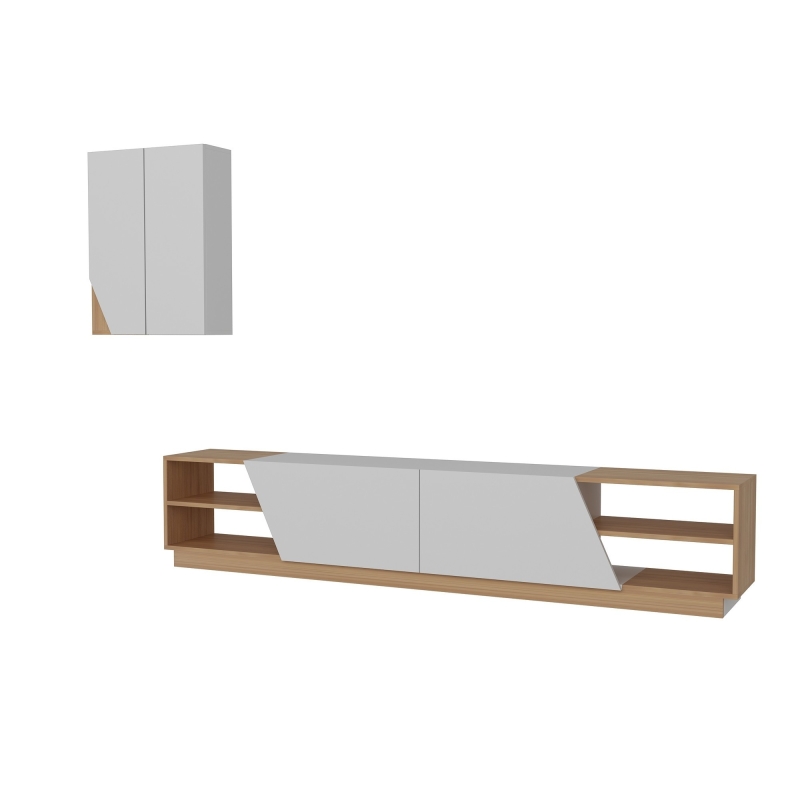 Kombinácia svetlého dreva a bielej farby vytvára elegantný vzhľad obývacej steny ZEBRA.