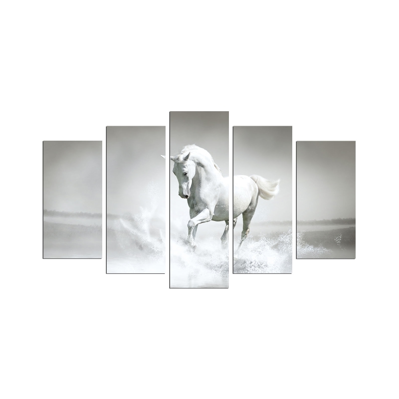 Súbor 5 obrazov zobrazujúcich bieleho koňa.