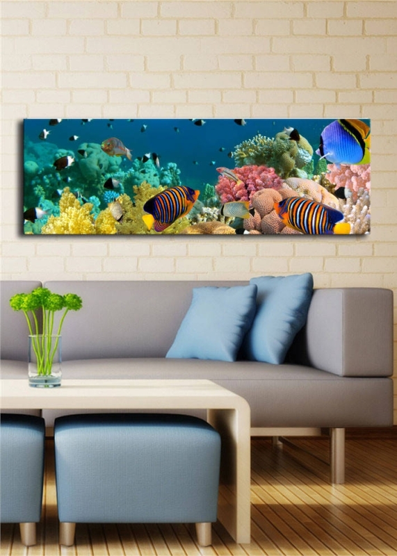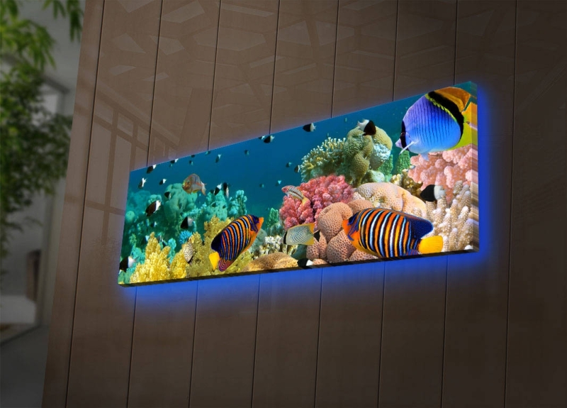 Nástenná maľba na plátne s led osvetlením zobrazujúca akvárium.