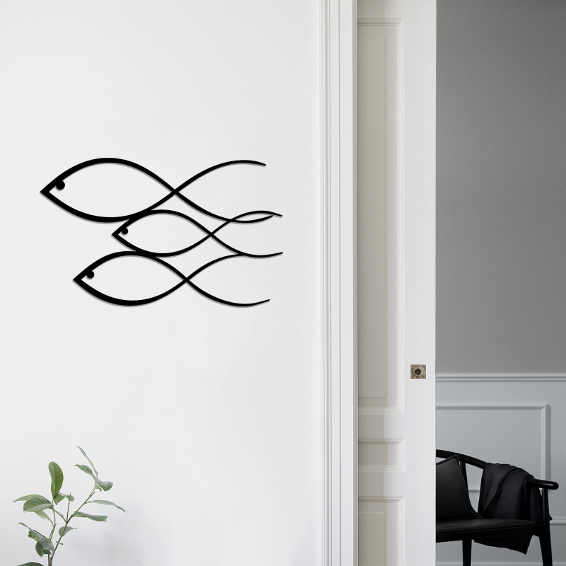 Jednoduchá kovová dekorácia na stenu s vyobrazením RYBY.