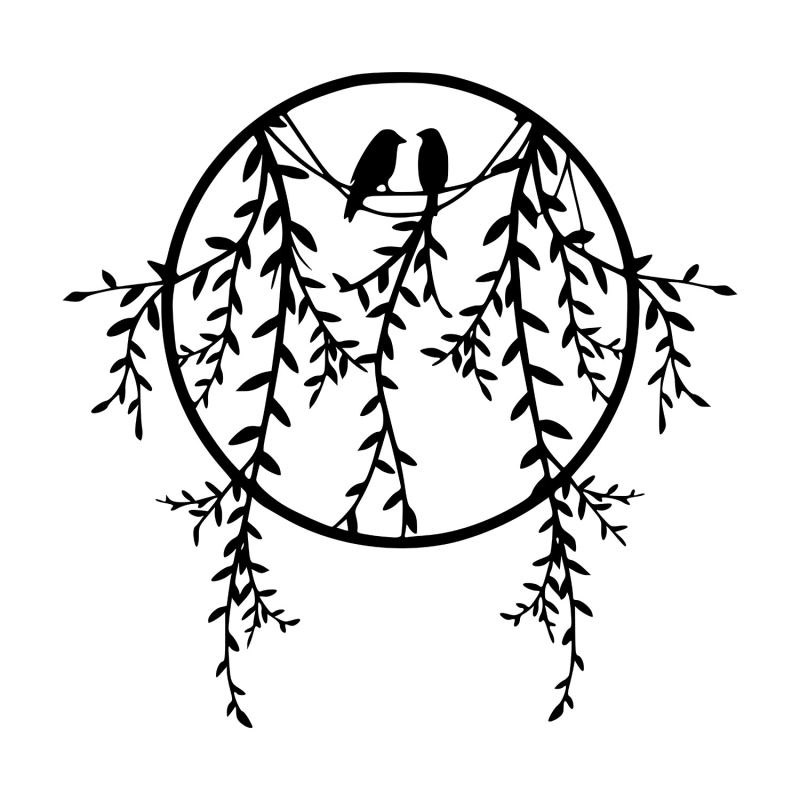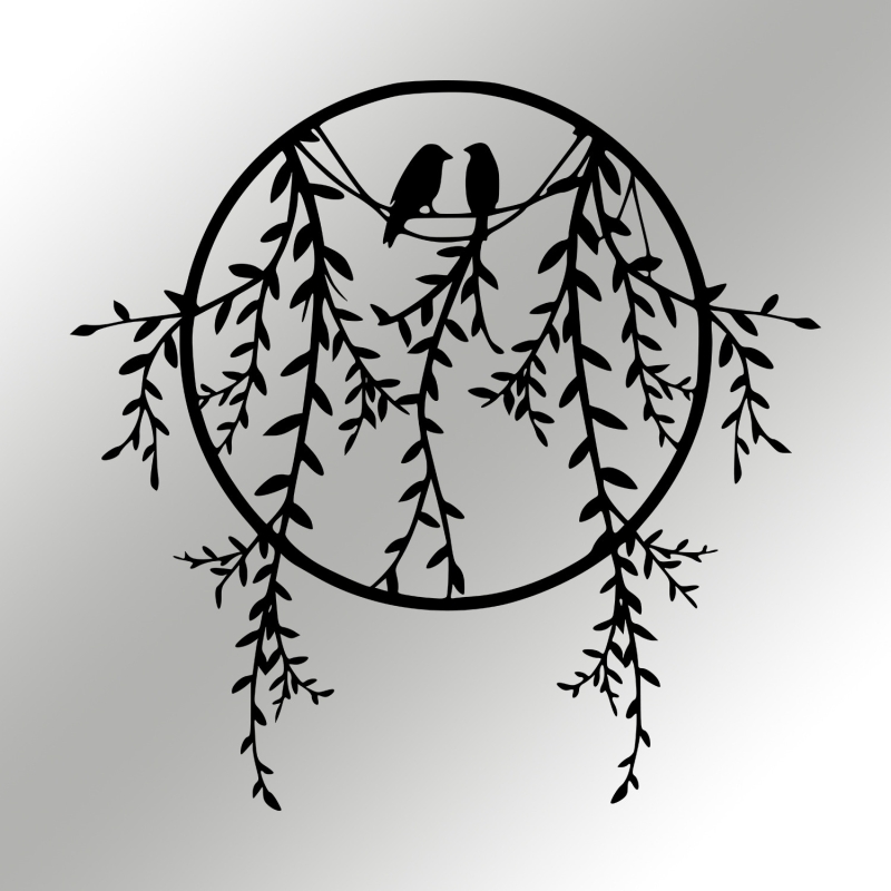 Kovová dekorácia na stenu s vyobrazením Vtáčikov s vtáčikmi.