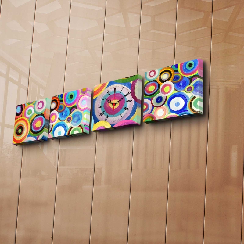 Štvordielne nástenné hodiny na plátne s motívom KRUHY.