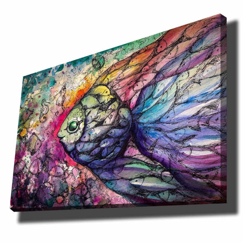 Nástenná maľba na plátne zobrazujúca DUHOVE RYBY.