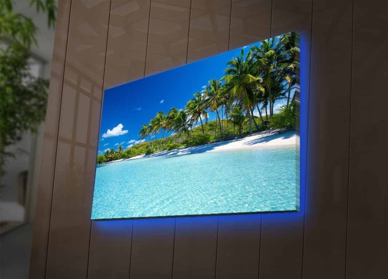 Nástenná maľba na plátne zobrazujúca PLÁŽ s LED podsvietením.