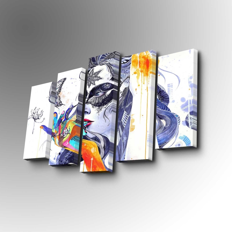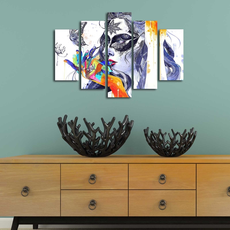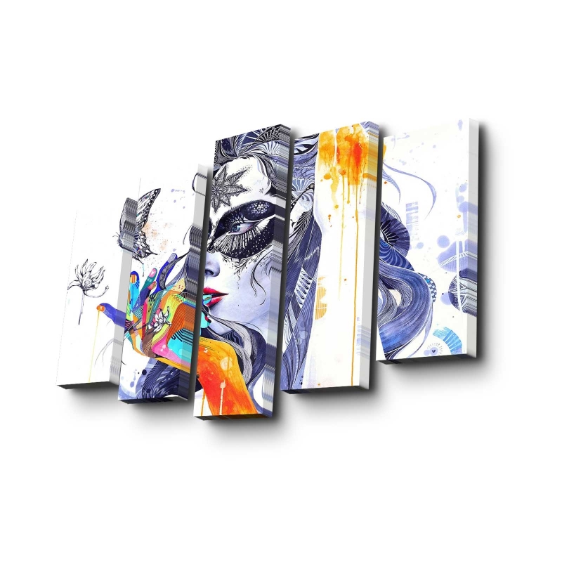 Súbor 5 obrazov na plátne zobrazujúcich ŽENU S MASKOU.