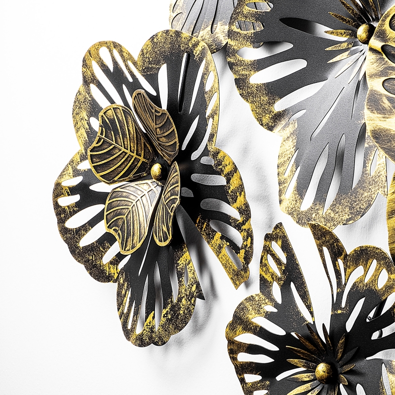 Jednoduchá kovová dekorácia na stenu ZLATÉ KVETY.