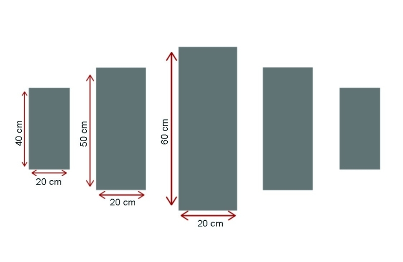 Veľkosť: 20 x 60 cm (1 kus) 20 x 50 cm (2 kusy) 20 x 40 cm (2 kusy)