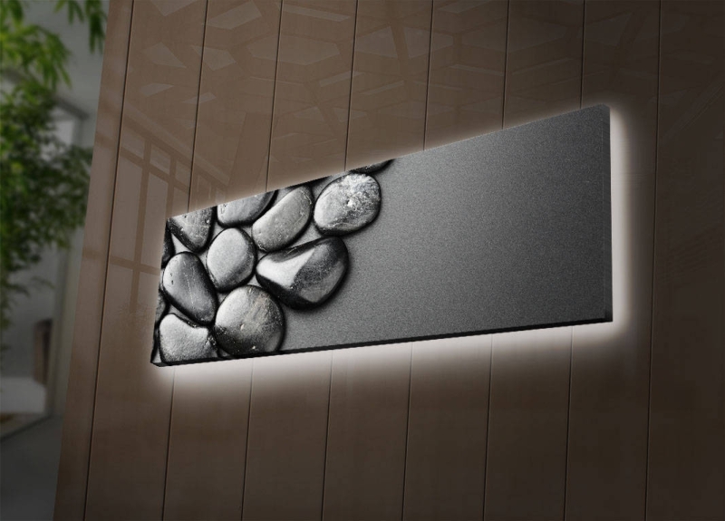 Obraz na stenu s LED podsvietením zobrazujúcim KAMENE.