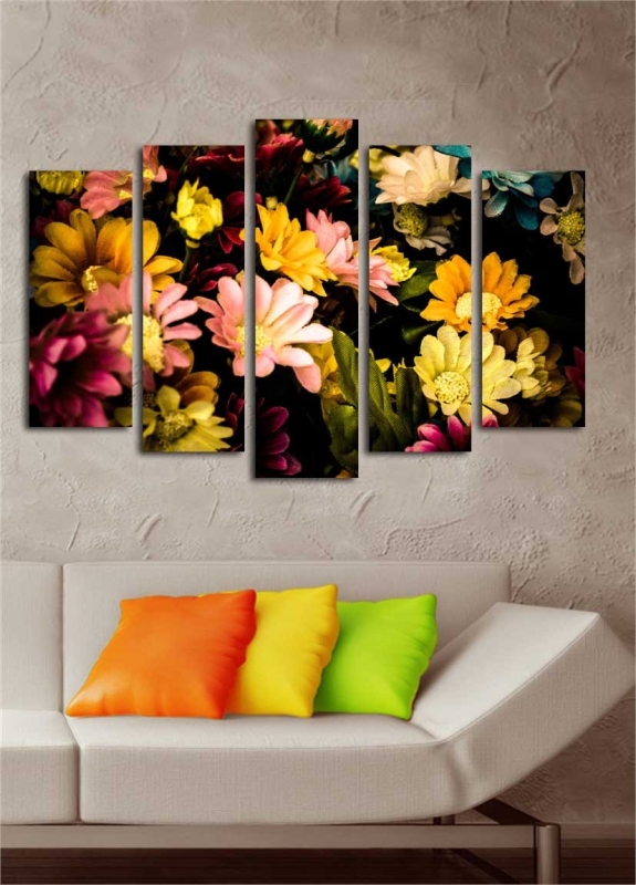 Nástenné dekoratívne obrazy na plátne s motívom FAREBNÉ KVETY.