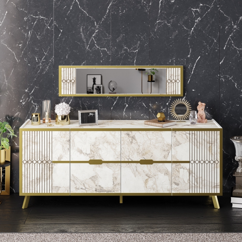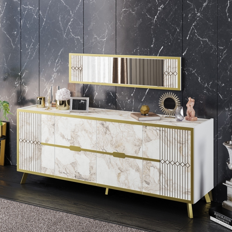 Nožičky a línie komody sú zlaté, komoda sa bude hodiť do honosne zdobených priestorov.