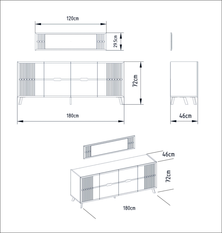 Šírka: 180 cm Výška: 72 cm Hĺbka: 46 cm