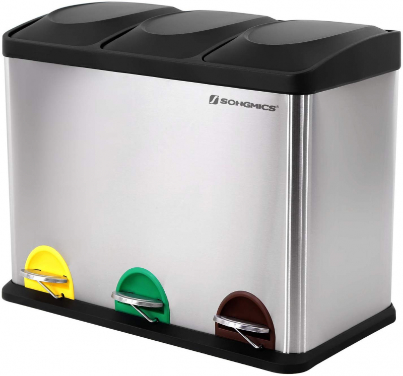 Overiť dostupnosť pre: SONGMICS Odpadkový kôš LTB45L na triedený odpad, 3 x 15 L, strieborno / čierny