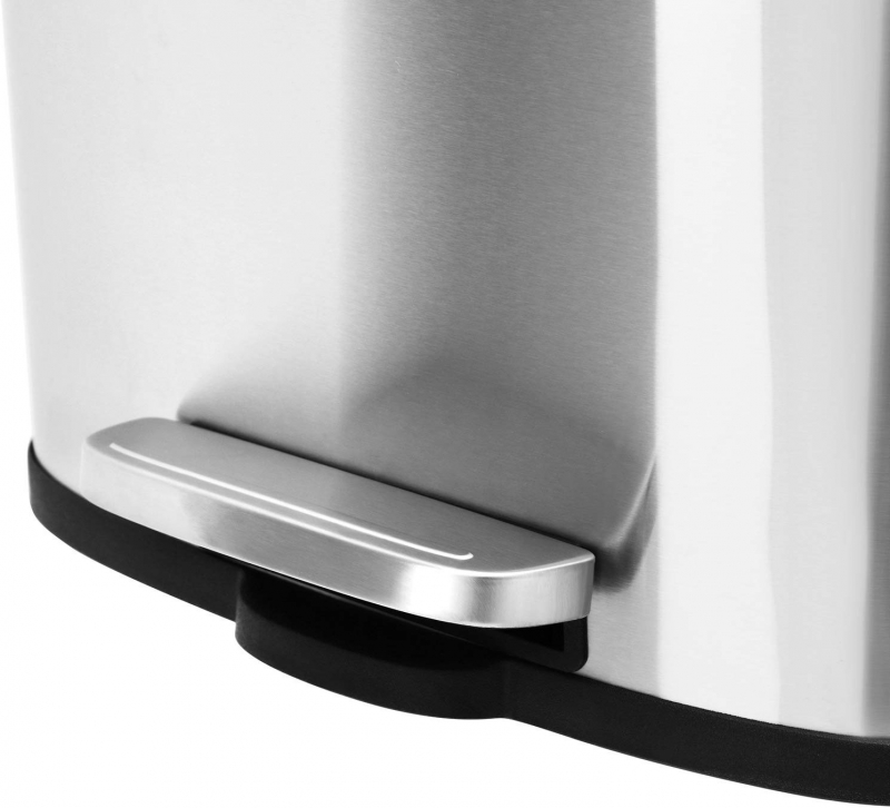 Vďaka vstavanému tlmiču sa veko zatvára naozaj ticho. Spodná strana je opatrená čiernym plastovým podstavcom, ktorý chráni podlahu pred poškriabaním. Rukoväť na zadnej časti uľahčuje manipuláciu s košom.
