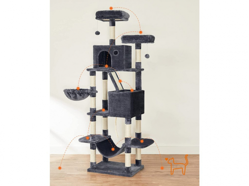 Na šesťposchodový strom môžete umiestniť aj ďalšie hračky a pre vašu mačku sa stane rajom s dostatkom miesta na hranie, pohodlné sedenie a odpočinok.