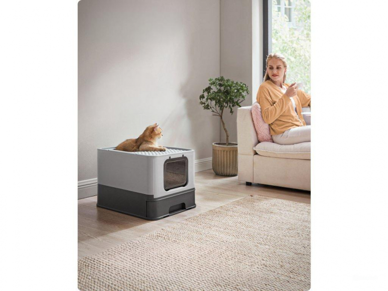 Vďaka svojej skladacej konštrukcii zaberá toaleta pre mačky minimum miesta, keď sa nepoužíva.