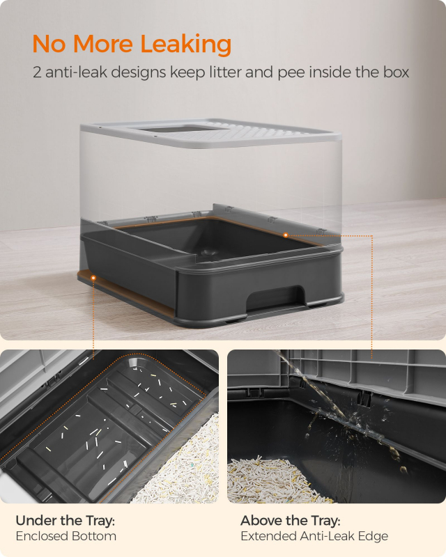Zvýšené okraje a uzavreté dno vaničky zabraňujú úniku steliva alebo moču na podlahu. Táto konštrukcia je užitočná, ak vaša mačka rada hrabe.