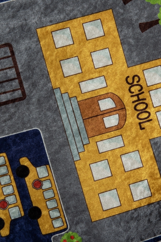 Detský koberec s kosou 140 x 190 cm s motívom CITY a cesty.