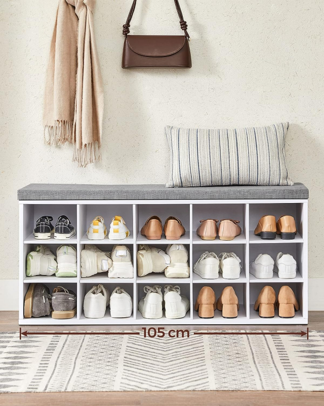 Moderný botník s čalúnenou lavicou je štýlový a funkčný kúsok od spoločnosti VASAGLE, ktorý spôsobí revolúciu v organizácii vašich topánok. Tento stojan na topánky je navrhnutý s ohľadom na vaše pohodlie a je vybavený čalúneným sedadlom, aby ste si mohli pohodlne obúvať alebo vyzúvať topánky.