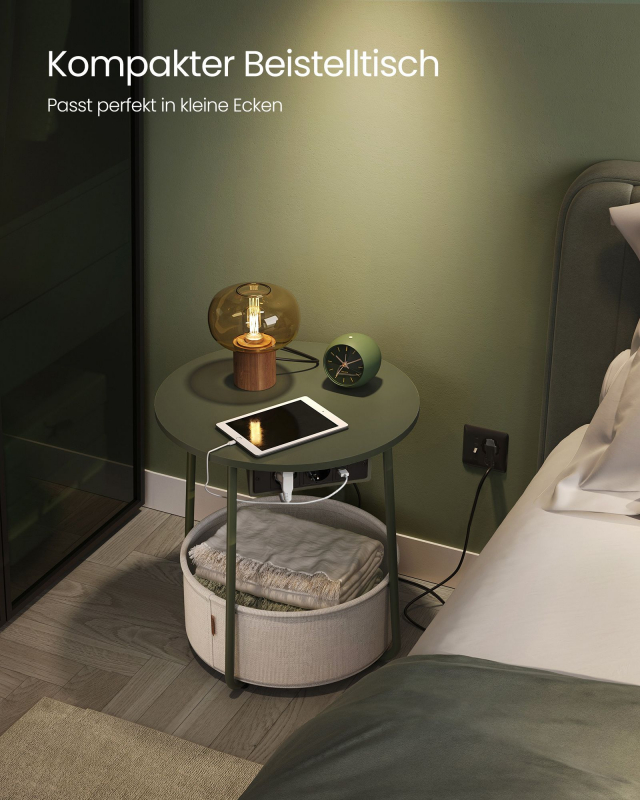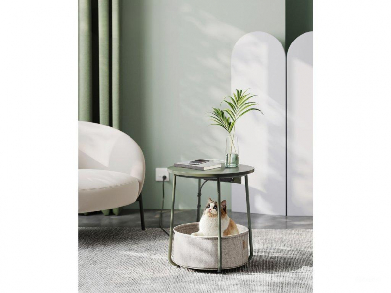 Overiť dostupnosť pre: VASAGLE Kruhový konferenčný stolík s textilným košom a zásuvkou zelený