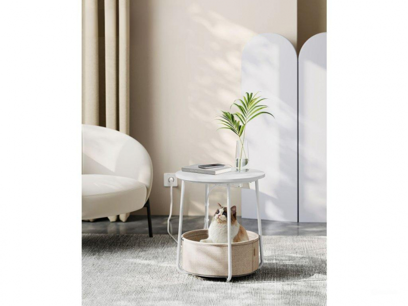 Overiť dostupnosť pre: VASAGLE Okrúhly konferenčný stolík s textilným košom a zásuvkou biely