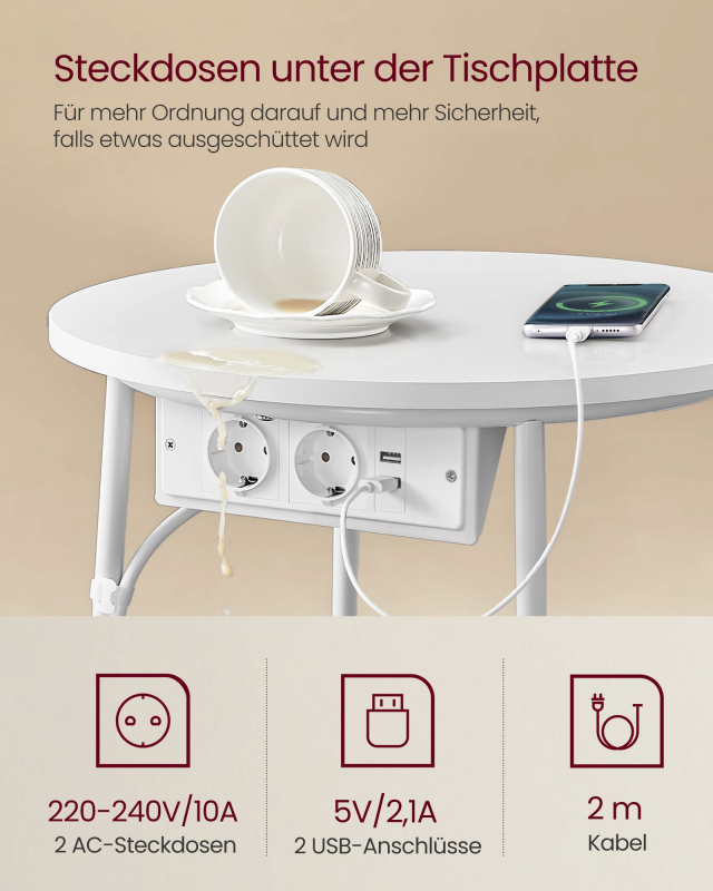 Jednoduchý okrúhly stolík dodá vašej obývačke alebo spálni nádych štýlu vďaka kombinácii matnej bielej a ťavej hnedej farby a hodí sa do rôznych štýlov interiéru