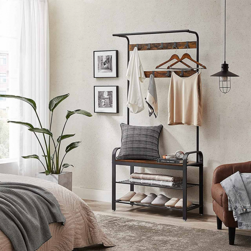 VASAGLE Vešiak do predsiene s botníkom 84 x 183 x 34 cm