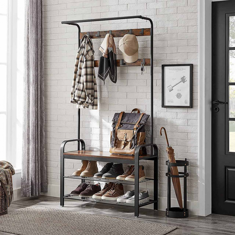 Niektorý nábytok vyzerá dobre, ale nie je veľmi praktický. Iný je funkčný, ale pôsobí chladne a nudne. Nie tak tento vešiak do predsiene - vďaka rustikálnym hnedým tónom, stabilným policiam a háčikom na kabáty môžete získať štýl aj funkčnosť.
