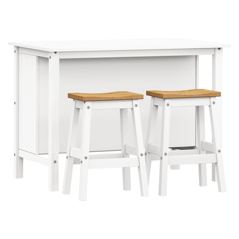 Kuchynský ostrovček + 2 barové stoličky CORONA 2 biely vosk/vosk