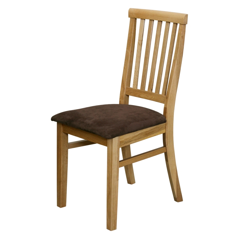 Čalúnená stolička 4843 dub, s povrchovou úpravou olejovým morením, sa bude najlepšie hodiť práve k jedálenskému stolu vo vyhotovení dub. Čalúnené sedadlo z imitácie brúsenej kože, vo vyhotovení hnedá, je pohodlné. Stolička s výškou sedu 45 cm vám zabezpečí komfortné sedenie pri jedálenskom stole.Vymeňte obyčajné stoličky za tie s príjemným čalúneným sedákom a doprajte si pohodlnejšie sedenie. Čalúnená stolička 4843 dub, s povrchovou úpravou olejovým morením, sa bude najlepšie hodiť práve k jedálenskému stolu vo vyhotovení masív dub. Príjemné čalúnené sedadlo z imitácie brúsenej kože, vo farebnom vyhotovení hnedá, je veľmi pohodlné a vyššia chrbtová opierka vám umožní príjemné podloženie chrbta. Pevná jedálenská stolička s výškou sedu 45 cm vám zabezpečí pohodlné sedenie pri prestretom jedálenskom stole. Kvalitné čalúnené stoličky vo vyhotovení masív dub vám zaistia komfortné posedenie a jedáleň ihneď krásne oživia. Posaďte sa na pekné a pohodlné stoličky a spoločné stolovanie bude vždy príjemné.
