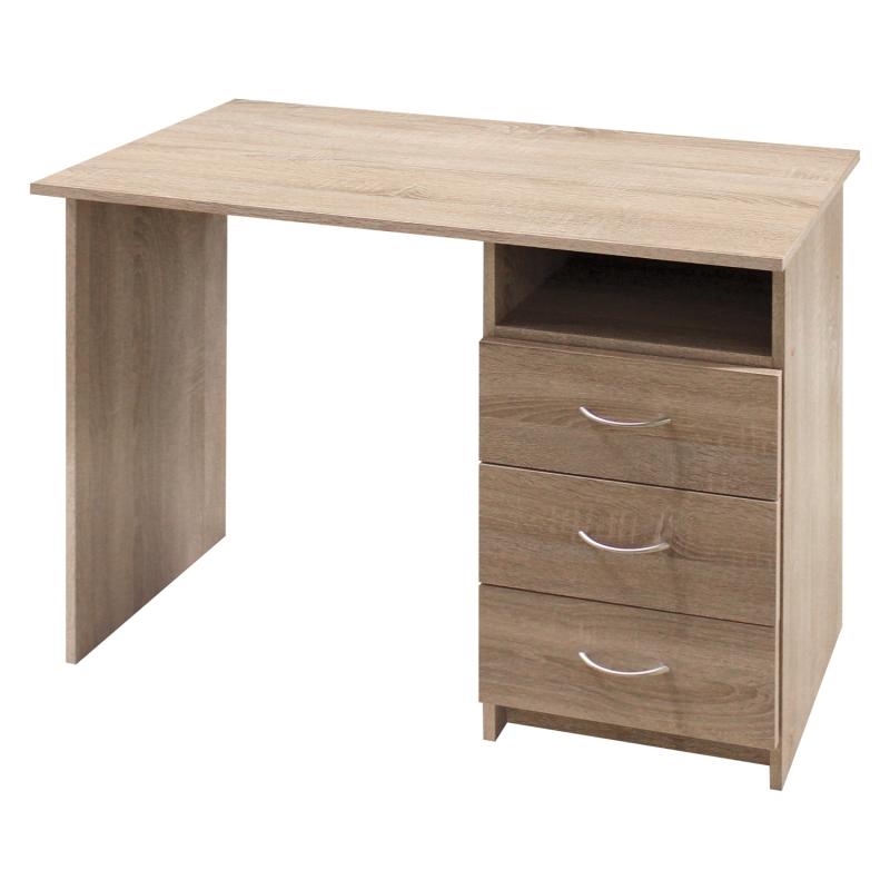 Písací stôl 50044, vo vyhotovení dub Sonoma, sa bude hodit do každej študentskej izby a pracovne zariadenej práve nábytkom vo vyhotovení dub Sonoma. Písací stôl obsahuje tri zásuvky s montážou možnou iba na pravú stranu. Do zásuviek uložíte všetky potrebné dokumenty, zošity a kancelárske potreby.Písací stôl 50044 vo farebnom vyhotovení dub Sonoma sa bude hodit do každej študentskej izby či pracovne zariadenej práve nábytkom vo vyhotovení dub Sonoma. Písací stôl obsahuje tri zásuvky s montážou možnou iba na pravú stranu. Do zásuviek tak uložíte všetky potrebné dokumenty, zošity, knihy a kancelárske potreby. Nad zásuvkami sa nachádza odkladací priestor na rozrobenú prácu. Na dosku stola sa vojde ako notebook, tak zošity a učebnice. Učenie tak bude pri tomto peknom stole veľmi príjemné, stačí zvoliť ľubovoľnú stoličku. Jednoduchý stôl poteší ako prváčikov, tak vyskokoškolských študentov, umiestnite tento stôl do ich izby a nechajte deti v pokoji študovať a baviť sa, moderný stôl im bude dobrým spoločníkom.