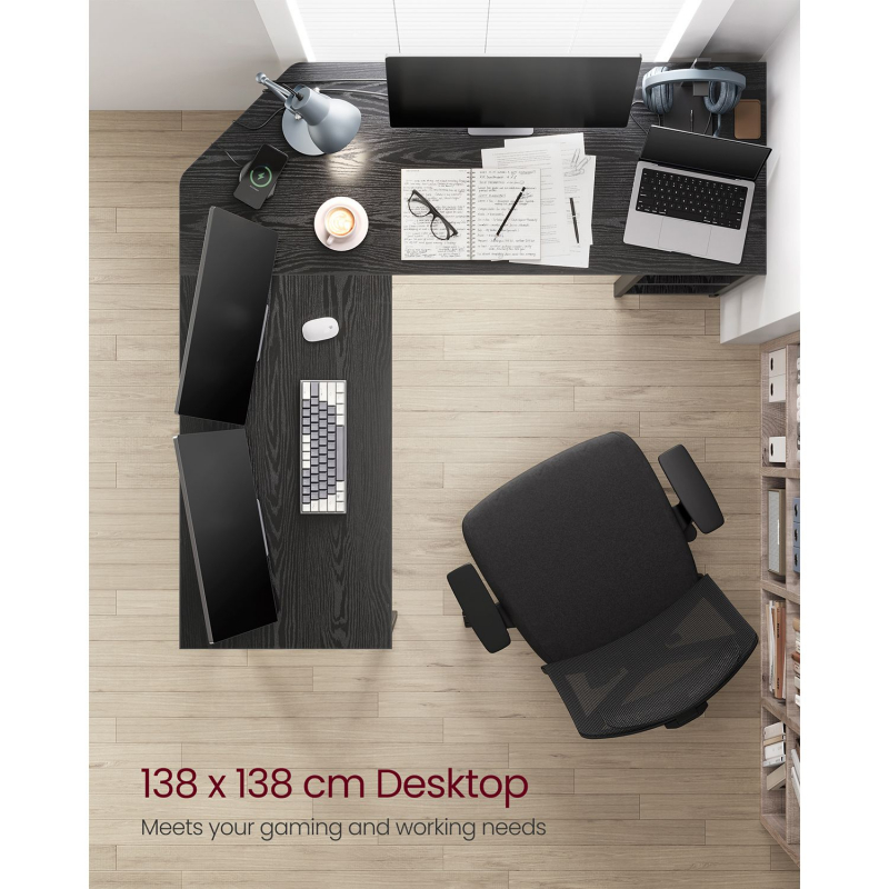 Na tento stôl s rozmermi 138 x 138 cm sa zmestia 3 až 4 počítačové monitory a poskytne vám dostatok priestoru na prácu alebo hranie počítačových hier, vďaka čomu budete mať všetko na dosah ruky.