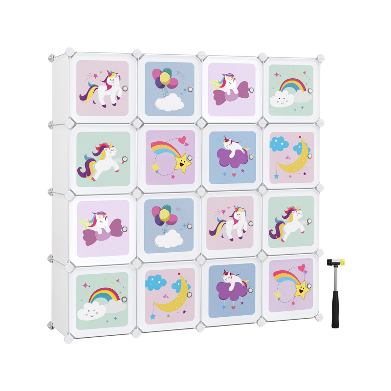 SONGMICS Variabilná rozkladacia polica s detskými motívmi 16 kociek