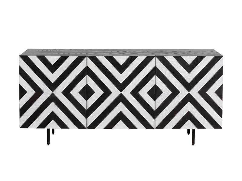 Arctic komoda bielo-čierna je ideálnym doplnkom pre každý moderný interiér, ktorý kombinuje štýl, funkčnosť a jedinečnosť. S jej ohromujúcim dizajnom a dostatkom úložného priestoru je perfektným riešením pre vašu obývačku alebo jedáleň. Vzor a kombinácia bielej a čiernej farby robí z tejto komody skutočný pútač pozornosti v každom modernom interiéri. Lakované mangové drevo, MDF materiál a oceľové nohy s práškovým nástrekom zaručujú prvotriednu kvalitu. Každý kus nábytku je ručne vyrobený a jedinečný. Mäkké zatváranie dverí a nastaviteľné pánty poskytujú komfort pri každodennom používaní. Komoda ponúka dostatok priestoru na uloženie vecí za tromi dverami, čo zabezpečuje poriadok a prehľadnosť. Výška 75 cm Šírka 160 cm Hĺbka 38 cm Nosnosť 30 kg Hmotnosť 56,5 kg