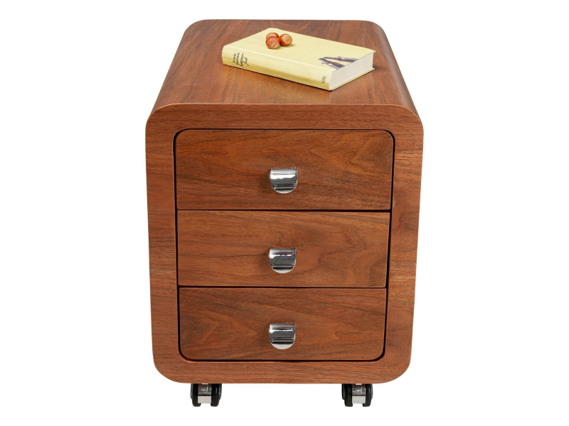 Skrinka Club má naozaj všestranné využitie – môžete ju použiť ako nočný stolík v spálni, ako konferenčný stolík v obývačke alebo ako úložnu skrinku v domácej kancelárii. Kompaktné rozmery zaručujú využitie skrinky aj v menších priestoroch a vďaka kolieskam sa veľmi jednoducho prenáša. Skrinka má tri zásuvky, ktoré vám poskytnú miesto na všetko potrebné a je vyrobená z orechovej dyhy v hnedej farbe.Kare DesignNemecká značka Kare Design symbolizuje kreativitu a jedinečnosť. Už od roku 1981 obohacuje trh netradičnými kúskami, ktorým nechýba poriadna dávka štýlu a fantázie. V ich produktovom portfóliu nájdete širokú škálu nábytku, osvetlenia a bytových doplnkov. Značku Kare Design nájdete vo viac ako 200 obchodoch po celom svete. Dajte priestor svojej predstavivosti a naplňte svoj domov originálnym zariadením od Kare, ktoré si okamžite zamilujete. Výška 54 cm Šírka 40 cm Hĺbka 45 cm Hmotnosť 22,5 kg