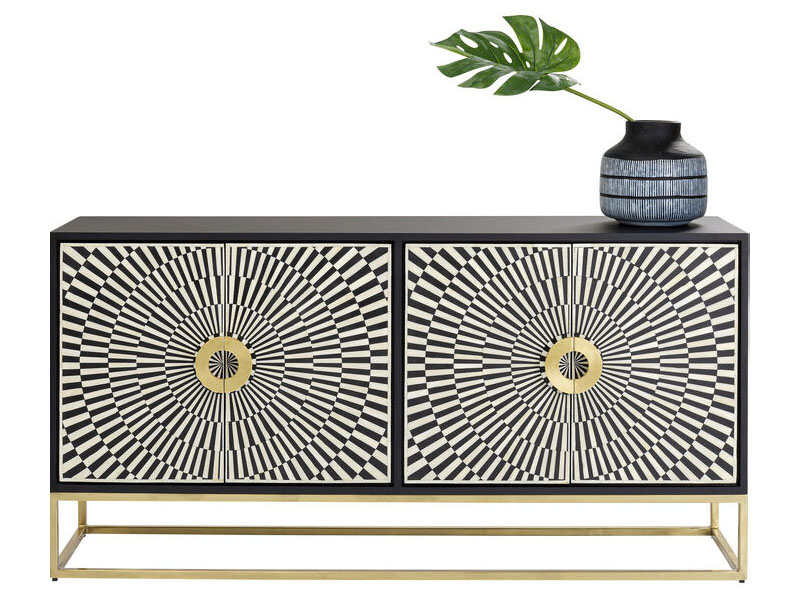 Komoda Electro je dokonalou kombináciou bielej a čiernej farby, klasiky a moderny. Je vyrábaná ručne a za použitia prírodných materiálov, ako je drevovláknitá doska z mangového dreva a z byvolích kostí. Nádherná harmónia a optická hra na prednej strane, takýto kus nábytku nikdy nikto neprehliadne.Kare DesignNemecká značka Kare Design symbolizuje kreativitu a jedinečnosť. Už od roku 1981 obohacuje trh netradičnými kúskami, ktorým nechýba poriadna dávka štýlu a fantázie. V ich produktovom portfóliu nájdete širokú škálu nábytku, osvetlenia a bytových doplnkov. Značku Kare Design nájdete vo viac ako 200 obchodoch po celom svete. Dajte priestor svojej predstavivosti a naplňte svoj domov originálnym zariadením od Kare, ktoré si okamžite zamilujete. Výška 80 cm Šírka 140 cm Dĺžka 60 cm Váha 63.5 kg