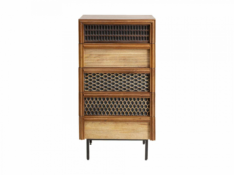 Komoda Gino je nádherným spojením prírodných materiálov a moderného dizajnu, ktorá vyniká svojou kvalitou a štýlom. Je vyrobená z masívneho lakovaného mangového dreva a lakovanej stredne hustej drevovláknitej dosky, čo zaručuje jej dlhú životnosť a odolnosť. Ručne vyrobená s dôrazom na detail, disponuje technológiou push-to-open a Soft-Close, čo prináša komfortné a tiché otváranie a zatváranie dvierok. Komoda unesie až 20 kg, takže poskytuje dostatok úložného priestoru na vaše veci. Hodí sa do moderných a minimalistických interiérov, kde jej elegantný dizajn doplnený oceľovými nohami dodá priestoru štýlový akcent. Skvele sa kombinuje s kovovými a drevenými doplnkami, čím vytvorí harmonický a nadčasový vzhľad vo vašom domove. Výška 110 cm Šírka 55 cm Hĺbka 40 cm Hmotnosť 31,8 kg