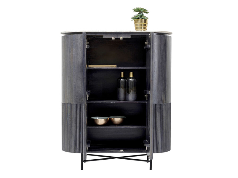Glenn komoda vyniká svojim valcovým tvarom inšpirovaným retro štýlom. Tento kus je navrhnutý s bielou mramorovou doskou a obsahuje tri police na efektívne skladovanie. Vertikálne detaily spodnej časti skrine vytvárajú reliéfny efekt, ktorý kontrastuje s jej zakrivenou siluetou. Skryté zapustené madlá na hornej strane dvoch dverí podčiarkujú integrovaný vzhľad prednej časti. Glenn vyžaruje diskrétnu noblesu a nadčasovú eleganciu a zaujme svojimi vzácnymi materiálmi a rozsahom použitia. Neváhajte ho skombinovať s konzolou, TV stolíkom alebo nízkym príborníkom z tej istej kolekcie pre zladený interiér! Kare DesignNemecká značka Kare Design symbolizuje kreativitu a jedinečnosť. Už od roku 1981 obohacuje trh netradičnými kúskami, ktorým nechýba poriadna dávka štýlu a fantázie. V ich produktovom portfóliu nájdete širokú škálu nábytku, osvetlenia a bytových doplnkov. Značku Kare Design nájdete vo viac ako 200 obchodoch po celom svete. Dajte priestor svojej predstavivosti a naplňte svoj domov originálnym zariadením od Kare, ktoré si okamžite zamilujete. Šírka 100 cm Hĺbka 45 cm Výška 138 cm Hmotnosť 75.40 kg