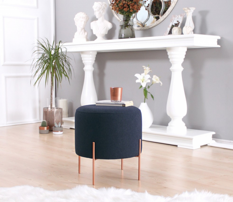 Taburet COPPER je potiahnutý tkaninou s medeným povlakom.
