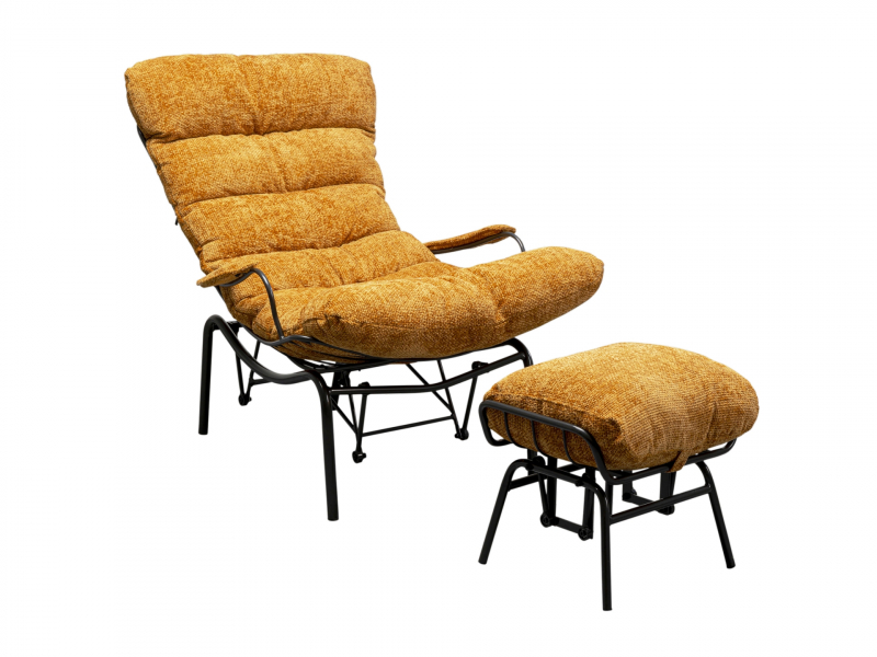Pútavý kúsok v podobe setu kresla a taburetky Vienna bude patriť jednoznačne k obľúbenému posedeniu v interiéri. Rovnako oceníte aj jeho nadčasový dizajn, ktorý je elegantný, decentný a zároveň hneď upúta pozornosť. Jeho dizajn a farebné prevedenie oceníte pri kombinovaní s ostatným nábytkom a doplnkami. Kontrastné prepojenie farieb tmavého rámu a žltých vankúšov podčiarkuje jeho jedinečnosť a zmysel pre detail. Poťah setu je zo 100% polyesteru s obľúbeným bouclé, konštrukciu rámu tvorí masívne prírodné borovicové drevo bez ošetrenia, drevotriesková doska potiahnutá melamínom a podstavec je zhotovený z oceľovej konštrukcie s práškovým nástrekom. Maximálna nosnosť setu je 110 kg s výškou sedu 40 cm. Skúška oderom: 25000 Martindale, Výhodou kresla je možnosť jeho naklonenia, pre ešte väčší relax. Set sa dodáva čiastočne demontovaný. Výška 105 cm Šírka 83 cm Hĺbka 52 cm Výška sedu40 cm Nosnosť 110 kg Hmotnosť 20 kg
