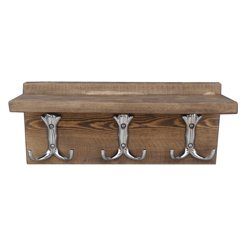 Závesný vešiak na kľúče s tromi háčikmi a hornou poličkou je vkusným doplnkom do vašej predsiene.