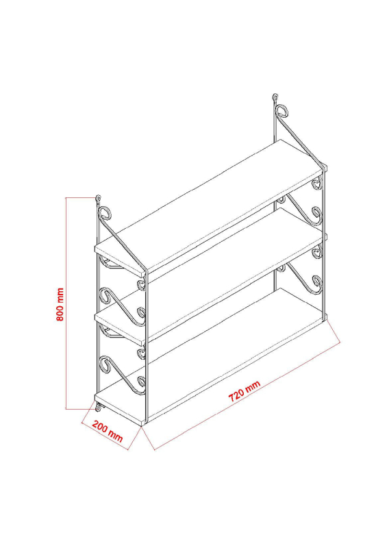 Policu tvoria dve poličky nad sebou, spojené kovovým zdobeným rámom.