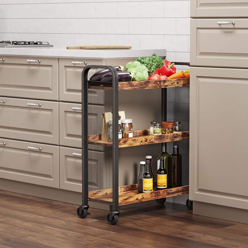 Tento kompaktný kuchynský vozík šetriaci miesto s 3 užitočnými policami vám pomôže pracovať efektívne, aniž by zaberal celú kuchyňu