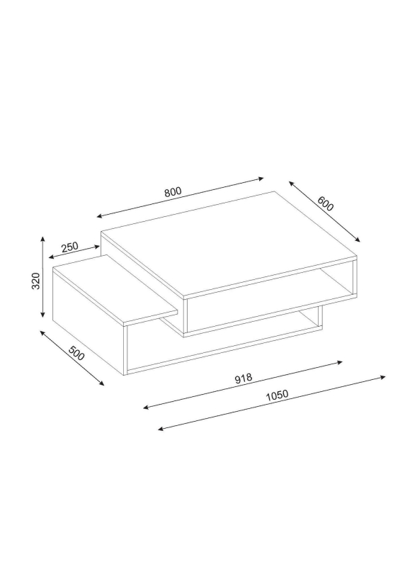 Stôl má veľa otvorených úložných políc na odkladanie drobných predmetov.