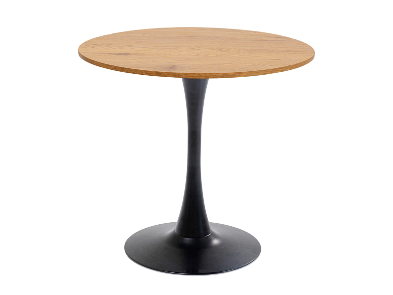 Jedálenský stôl Schickeria je so svojou kompaktnou veľkosťou ako stvorený pre menšiu jedáleň. Je navrhnutý s ohľadom na praktickosť a nadčasový štýl. Jeho stolová doska je vyrobená z MDF materiálu a má laminovaný vzhľad dubového dreva. Noha stola pozostáva z lakovanej ocele, čo mu dodáva eleganciu a robustnosť. Oceľová konštrukcia zabezpečuje stabilitu a odolnosť. S hrúbkou panelu 1,80 cm je tento stôl dostatočne pevný, aby odolal každodennému používaniu a zároveň stále vyzerá štýlovo. Jeho okrúhla stolová doska vytvára intímnu atmosféru a umožňuje pohodlné sedenie pre všetkých členov rodiny. Vytvorte si príjemnú a elegantnú jedáleň, kde si budete môcť vychutnať chvíle pri jedle strávené s vašou rodinou a blízkymi.Kare DesignNemecká značka Kare Design symbolizuje kreativitu a jedinečnosť. Už od roku 1981 obohacuje trh netradičnými kúskami, ktorým nechýba poriadna dávka štýlu a fantázie. V ich produktovom portfóliu nájdete širokú škálu nábytku, osvetlenia a bytových doplnkov. Značku Kare Design nájdete vo viac ako 200 obchodoch po celom svete. Dajte priestor svojej predstavivosti a naplňte svoj domov originálnym zariadením od Kare, ktoré si okamžite zamilujete. Výška 74 cmPriemer80 cm Hmotnosť 11,7 kgNosnosť25 kg