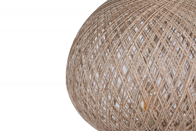 Jutové stínidlo vo tvaru koule je ručne vyrobené, tlačidlo zapínania a zapínania je na kábli.