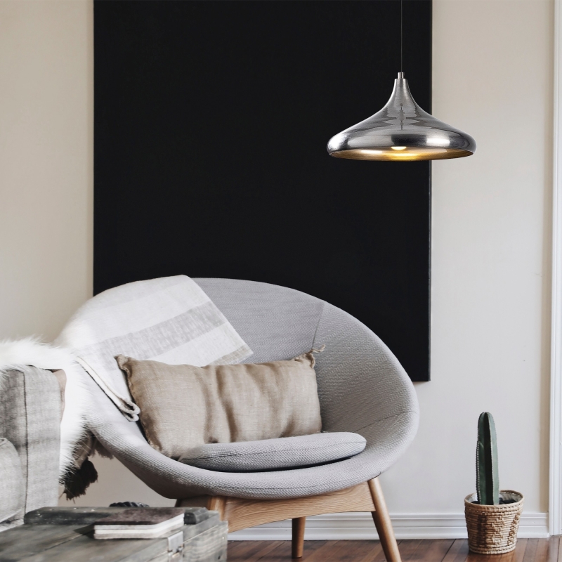 Ako veľká kvapka striebra vyzerá tienidlo lustra BERCESTE visiace na dĺžkovo nastaviteľnom kábli.