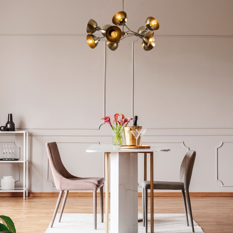 Luster DRAM je elegantný vo svojej zlatej farbe a robustné telo ho nechá vyniknúť, teda bude vhodnou ozdobou veľkých priestranných izieb.