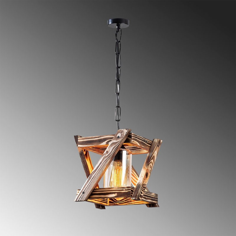 Luster EREBOS predstavuje na reťazi zavesenú konštrukciu z hrabového dreva v tvare lucerny, v ktorej je schovaná žiarovka.